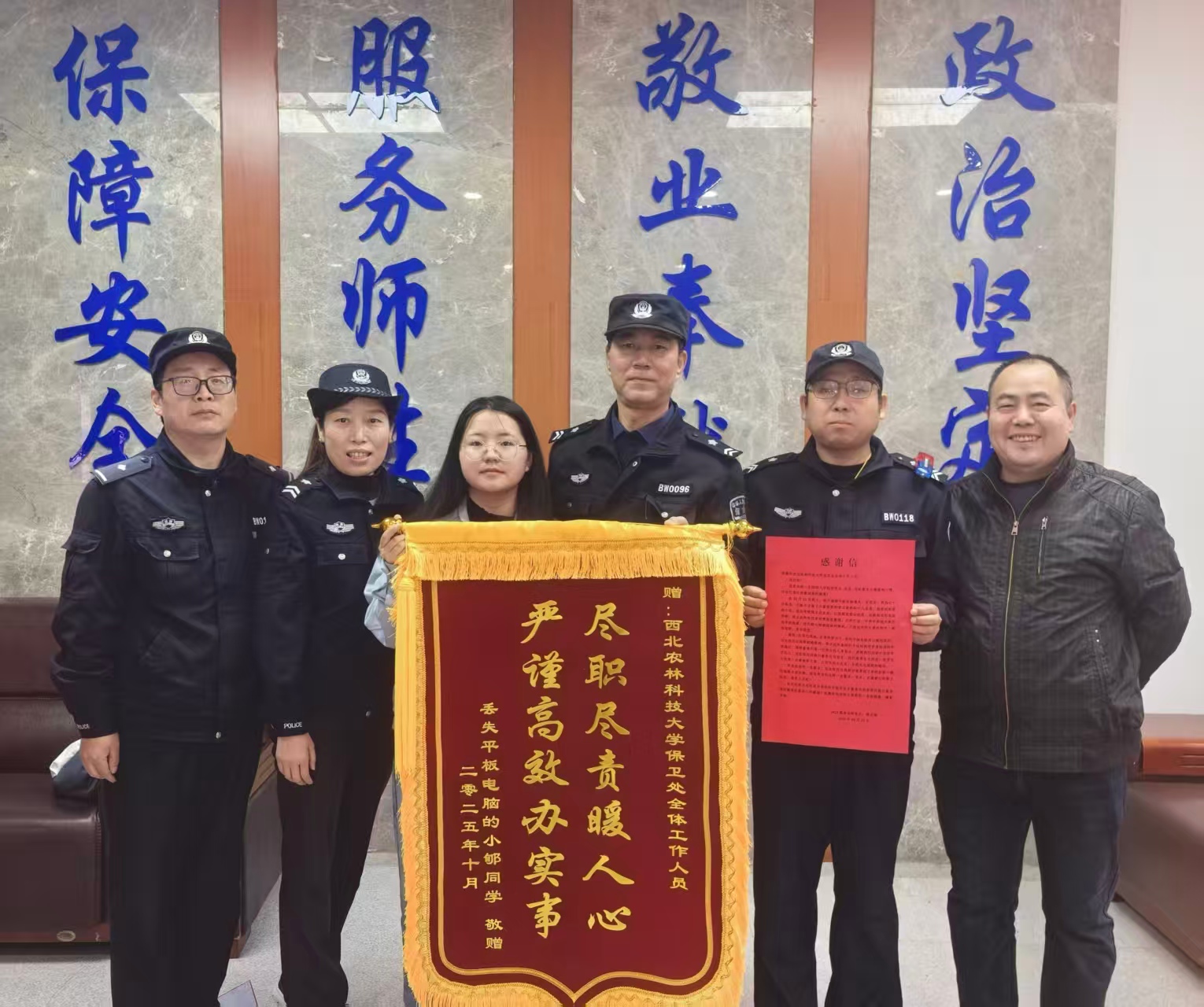 近日,我校一名研究生在三号教学楼自习时,一台价值不菲的苹果平板电脑不慎遗失。在学校保卫处工作人员高效负责的处置下,仅用不到两小时便将财物成功追回,赢得了当事学生的认可和好评。