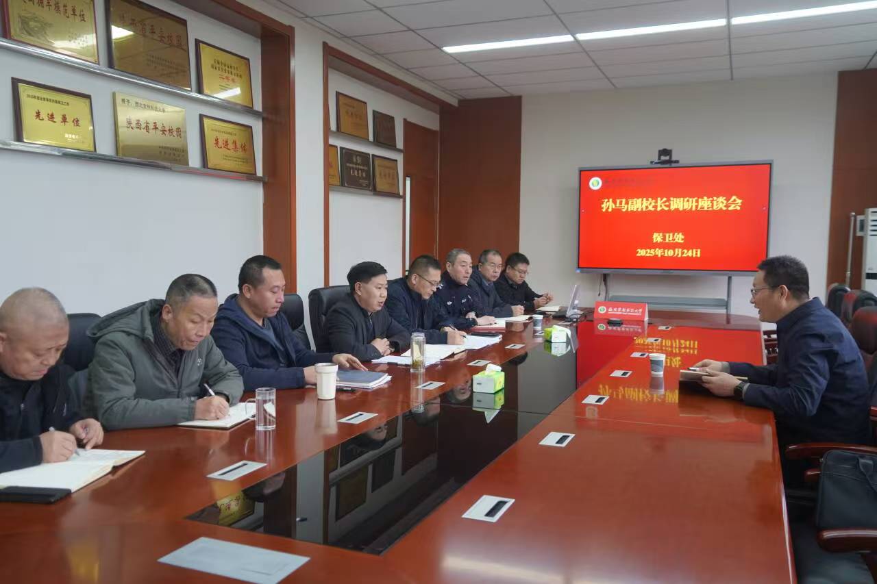 10月24日上午,副校长孙马到保卫处调研指导工作,保卫处领导班子成员及科室负责人参与调研。