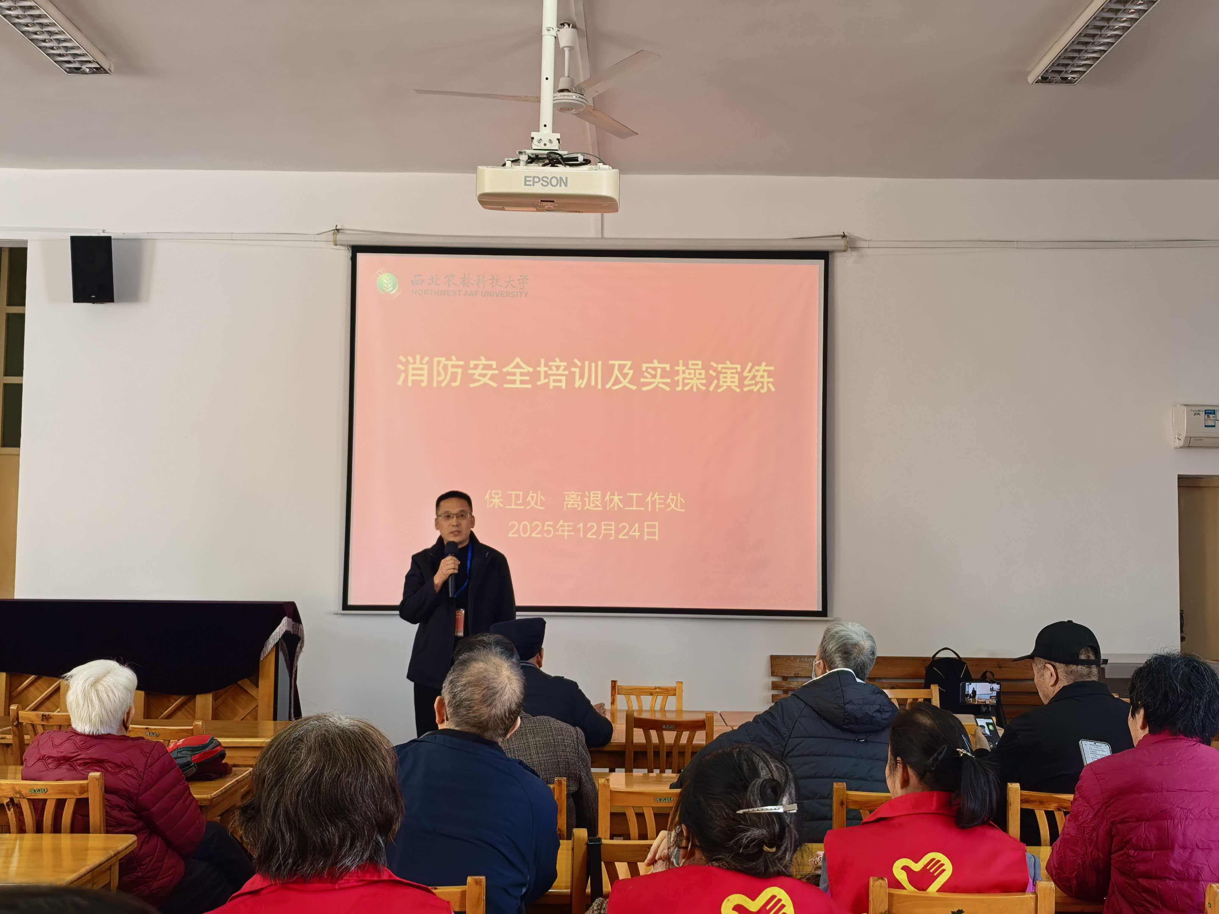 12月24日下午,保卫处联合离退休工作处面向100余名离退休老同志及相关职工,开展消防安全培训及实操演练活动,聚焦用火用电安全与自救技能,全方位筑牢校园及家庭消防安全屏障。